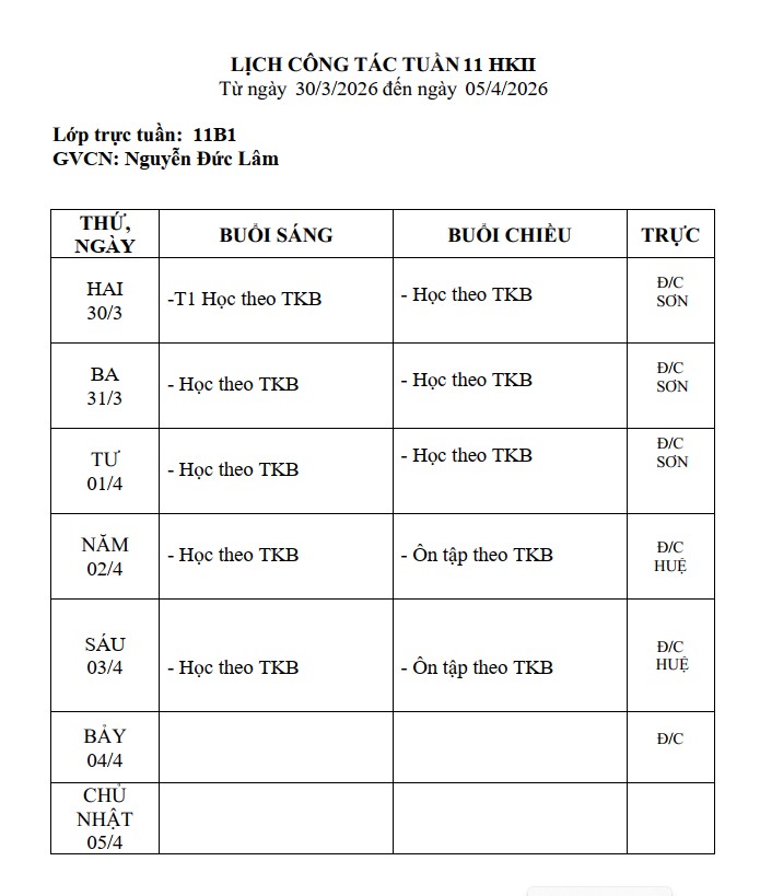 Lịch công tác tuần 11 _HKII