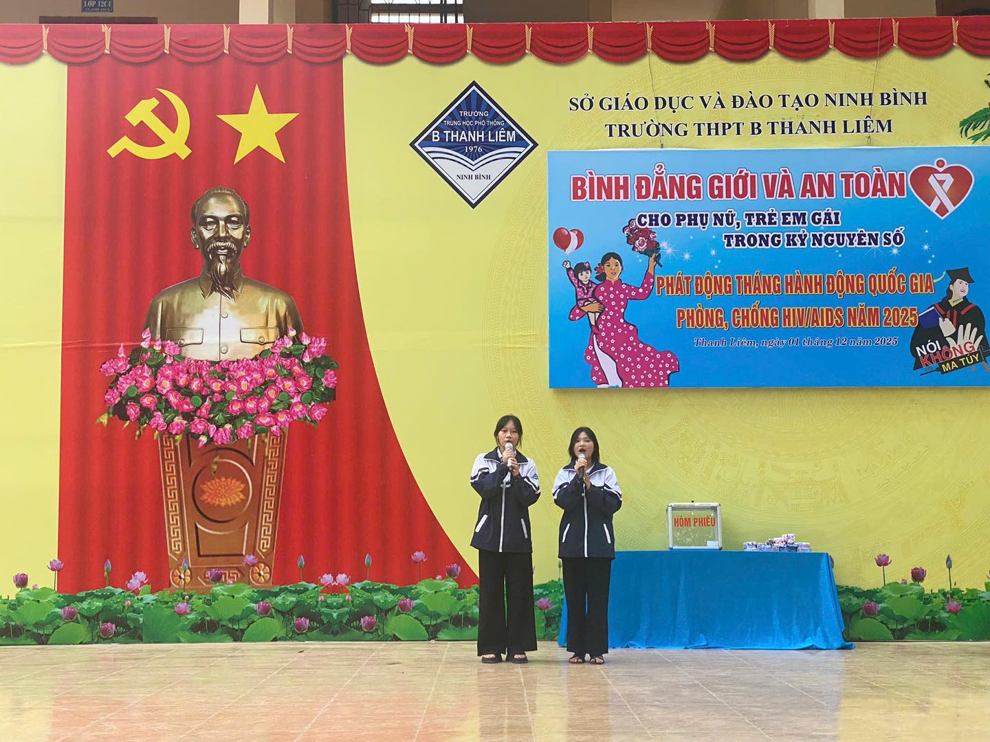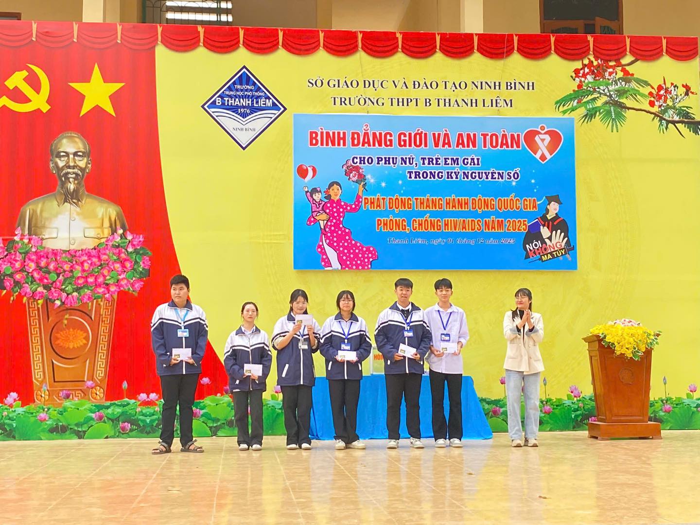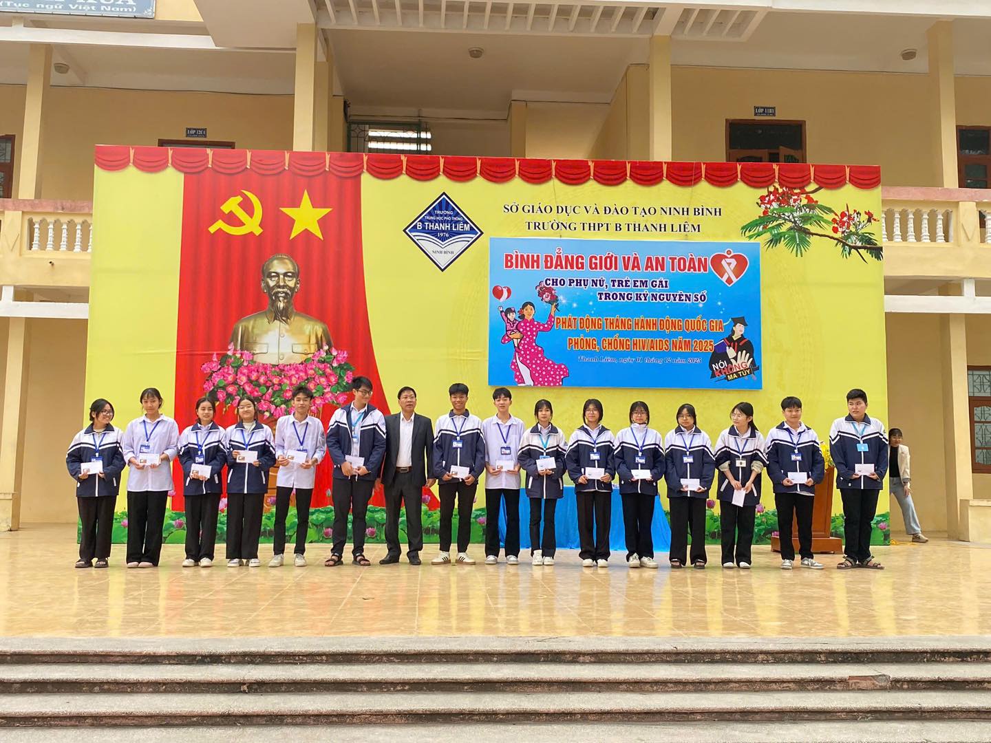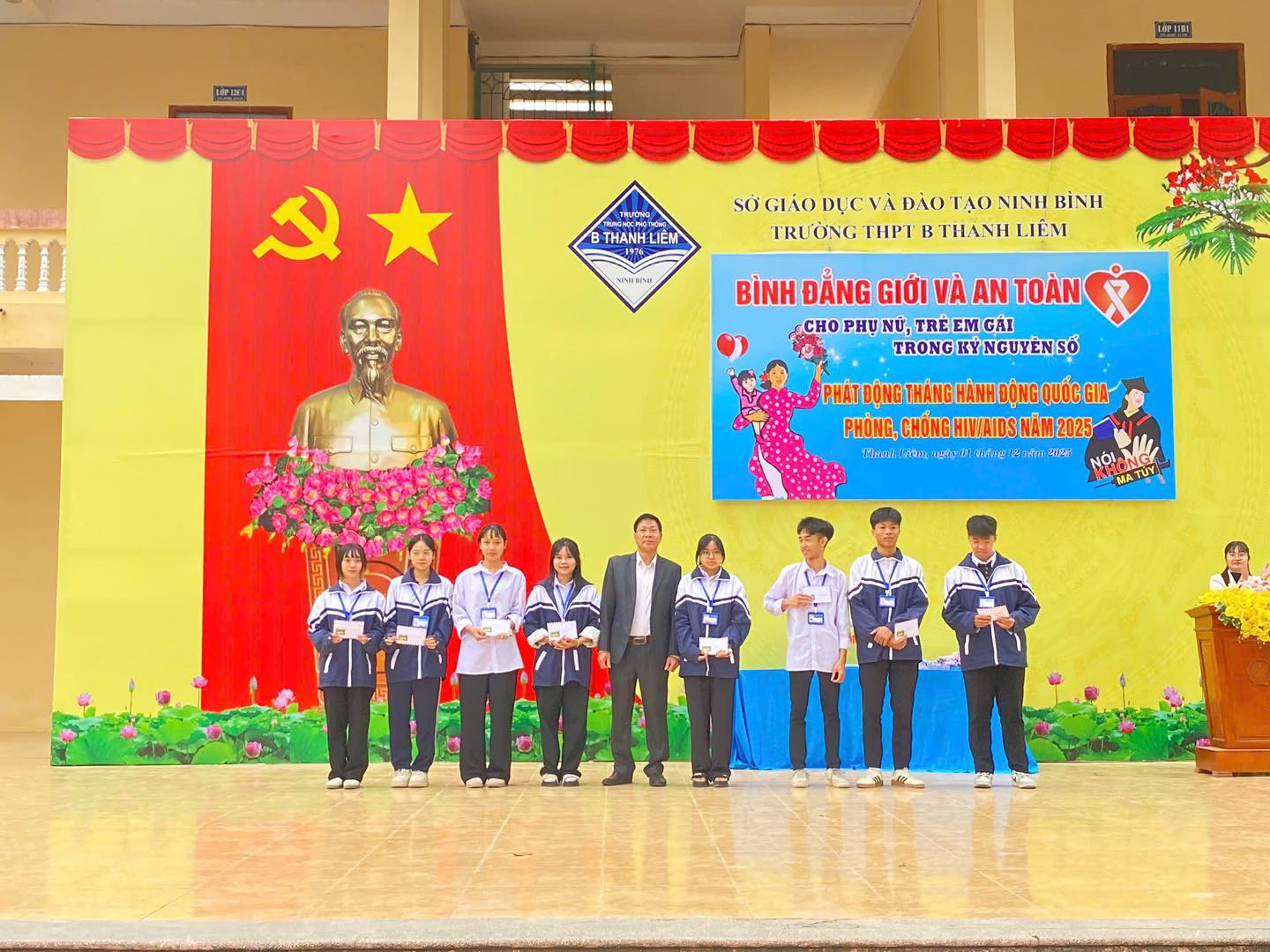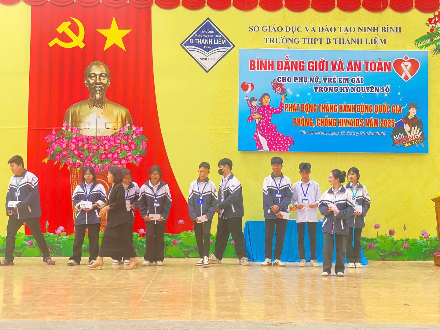 Sáng nay, ngày 01/12/2025 trong không khí trang nghiêm của buổi chào cờ đầu tuần, thầy và trò Trường THPT B Thanh Liêm đã tổ chức nhiều hoạt động ý nghĩa nhằm tuyên truyền, giáo dục kỹ năng và lan tỏa các giá trị nhân văn trong nhà trường.
